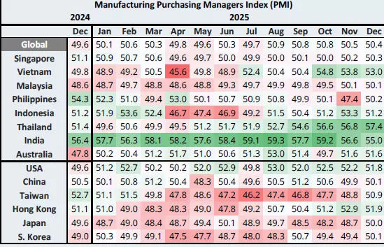 The report said short-term freight demand across Asia is being supported mainly by pre-holiday shipping, even as broader economic signals remain weak. Global manufacturing ended 2025 with only marginal expansion, with the Global Manufacturing PMI hovering around 50.5, indicating subdued order growth and cautious demand heading into the first quarter of 2026.